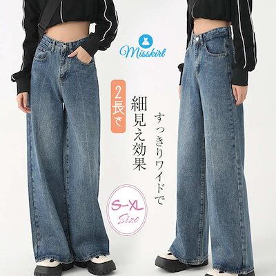 ワイドパンツ デニム パンツ レディース ロング パンツ ボトムス デニム ジーンズ ガウチョパンツ 体型カバー ロングパンツ 大きいサイズ 春 秋 冬 ハイウエスト 着痩せ 美脚 通勤 2タイプ ゆ