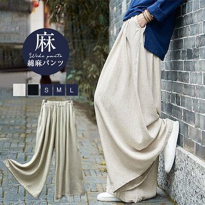 ワイドパンツ パンツ 綿麻混 ガウチョパンツ スカーチョ ガウチョ スカンツ 春夏 レディース 無地 ボトムス リネン 大きいサイズ ロングパンツ ゆったり カジュアル ナチュラル 体型カバー 綿麻