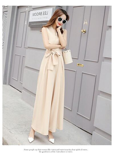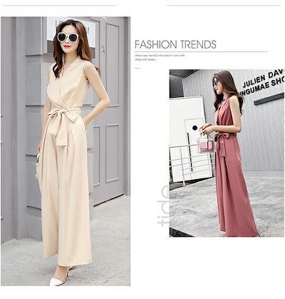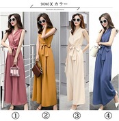 オールインワン レディース ワイドパンツ ノースリーブ パーティードレス カジュアル スカンツ レディース サロンベット エレガント ウエストリボン ガウチョ マキシ パンツ フォーマル マタニティ