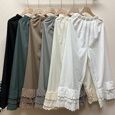 ペチコートペチパンツ ボトムス ペチコート パンツ ナチュラル シンプル 体型カバー 重ね着 カジュアル レディース 服 大人 ゆったり ワイドパンツ レディース 裾レース フリル ガウチョパンツ リ