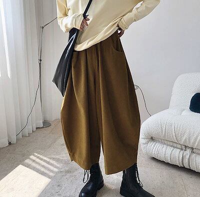ワイドパンツ サルエルパンツ レディース ガウチョパンツ ベイカーパンツ ボトムス シルエット 大人 パンツ ゆったり ウエストゴム ギャザー入り 袴パンツ ポケット付き 無地 きれいめ こなれ感 美