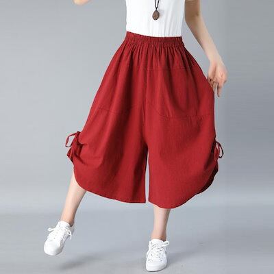 ガウチョパンツ スカチョ スカーチョ 七分丈パンツ バルーンパンツ ワイドパンツ 綿麻 パンツ レディース スカート風 リネン パンツ ボトムス 7分丈 クロップド 春夏 無地 チェック ゆったり 可
