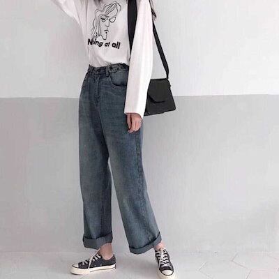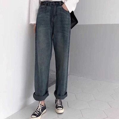 ストレートデニムパンツ デニム パンツ ジーンズ レディース ワイドパンツ ハイウェスト ウォッシュ加工 秋 冬 レトロ BF ボトムス ゆったり デニムパンツ デニムワイドパンツ ガウチョーパンツ