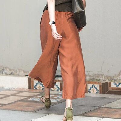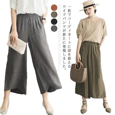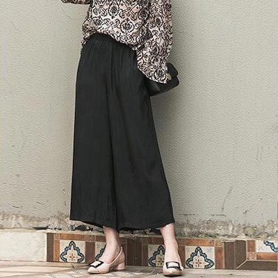 ワイドパンツ レディース ガウチョパンツ ボトムス フレアパンツ カジュアルパンツ 体型カバー ロングパンツ 九分丈 落ち感 ゴムウェスト ハイウェスト カジュアル シンプル ゆったり リラックス