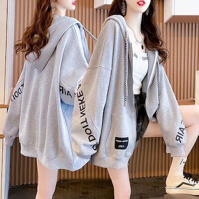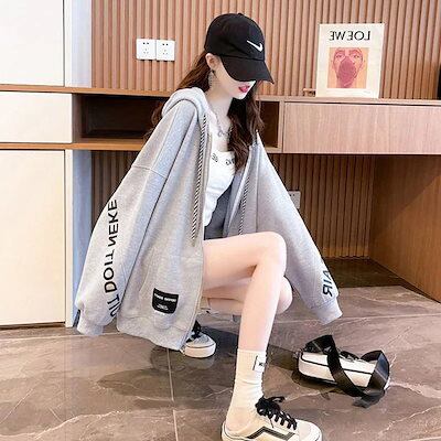 春 パ一力一秋 長袖パーカー レディース 秋アウター カジュアル 体型カバーカーディガン ゆったり百掛け 長袖韓国ファッショントップス