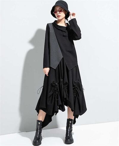 パーカー Tシャツ レディース 長袖 カットソー トップス 無地 モード系 変形 アシンメトリー アシメ 変形Tシャツ パーカー ヘムデザイン 個性的 クラシカル きれいめ おしゃれ オフィス 春 秋