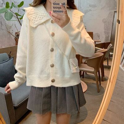セーター 韓 カジュアル 可愛い レディース トップス ベーシックニットカーディガンあったか!カシミヤタッチ春夏 学生 ニットカーディガン タートルネックニット ピーターパンカラー アウター 厚手
