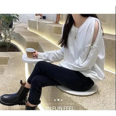 2024年春新作長袖 きれいめスウェットレディース春秋新作40代肩出しブラウス長袖トレーナーゆったりトップス韓国風プルオーバー無地可愛い