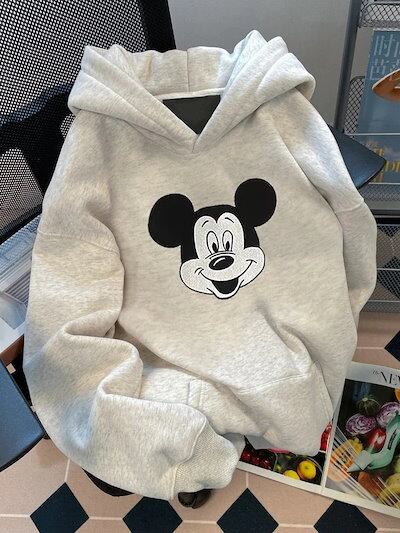 2024年春新作長袖 レイジーミッキーマウスプリントレディースベルベット肥厚老化防止ファッショナブルなジャケットフード付きスウェットシャツ