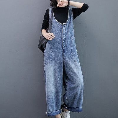 サロペット 若見え オーバーオール ゆったり オールインワンパンツ 大きいサイズ 着痩せ ジーンズ ワイドパンツ レディース ズボン