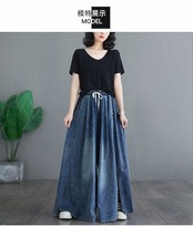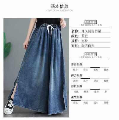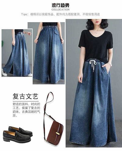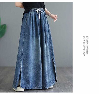 「ファットガール」 デニム ワイドパンツ キュロットスカート スリット ゴム ハイウエスト 体型カバー 大きいサイズ ゆったり レディース 福袋