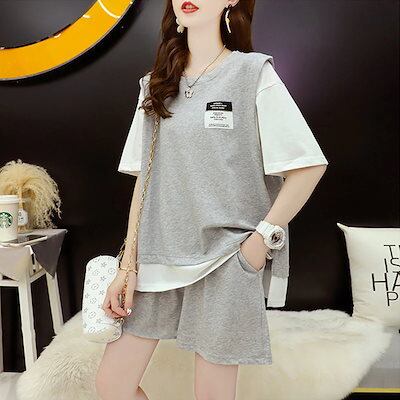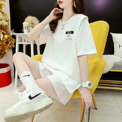 気質 大きめサイズ カジュアル ゆったり 可愛い 日焼け止め Tシャツセット 新作 セットアップ涼しく楽ちんセットアップ 2024 レディース 二点セット ワイドパンツ