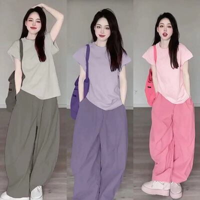 二点セット 百掛け Tシャツセット ワイドパンツ カジュアル レディース 新作 おしゃれ 大きめサイズ スウエットセットアップ 気質 2024 セットアップ涼しく楽ちんセットアップ