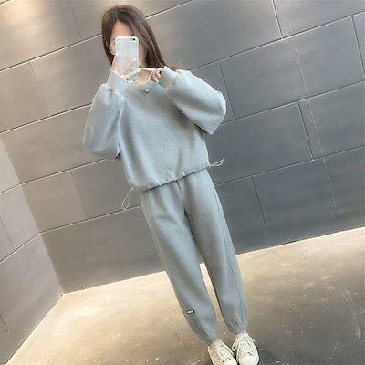 2oo円OFF!】2024新作 カジュアル 【2枚購入で 着痩せ セットアップ 運動 大きいサイズ レディース スウェット 二点セット パーカー ワイドパンツ 韓国ファッション
