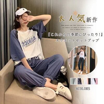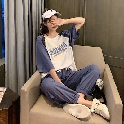 2024 セットアップ涼しく楽ちんセットアップ 新作 大きめサイズ レディース 薄手 日焼け止め セット シンプル 接触冷感 Tシャツ 二点セット ワイドパンツ カジュアル