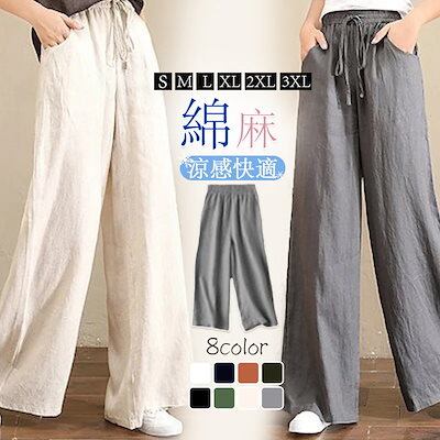 おしゃれヨガウエア ワイドパンツ 百掛け 綿麻 大きいサイズ UVカット ワイドパンツ 紫外線対策 ゆったり 体型カバー フレアパンツ 夏 韓国 夏 ストレート ズボン レディース ファッション