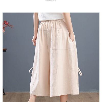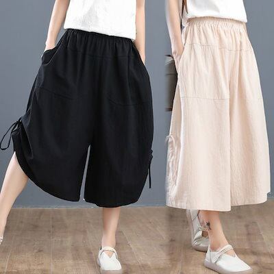 夏 大きいサイズ 七分丈麻ワイドパンツ レディース ハイウエスト レトロ ゆったりズボン 体型カバー? カジュアル パンツ 百掛け 着痩せ ショットパンツ