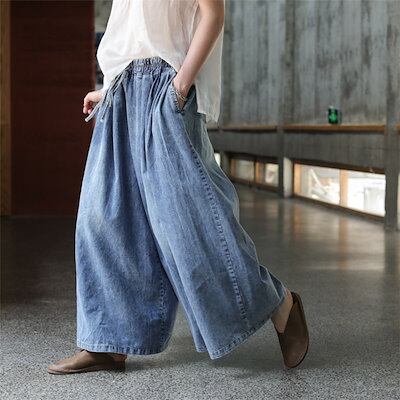 ワイドパンツ デニムパンツ ガウチョパンツ パンツ レディース 秋 冬 スカーチョ ガウチョ ワイドパンツ スカンツ ロング丈 パンツ 体型カバー 大きいサイズ ボトムズ ラシャ 春 夏 着痩せ 美