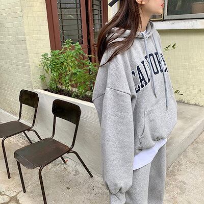 2024 秋冬 2点セット トップス 裹起毛 防寒あったか お出かけ 暖かい 羽織り かわいいショート丈 セットアップ ルーズ ボトムス ストレート系冬 ゆったり サイズワイドシルエット レディース