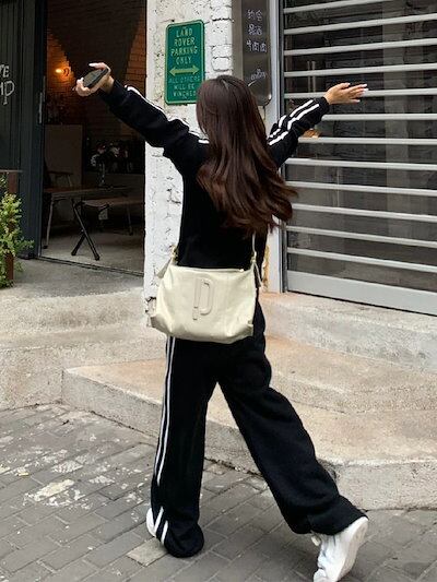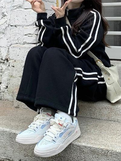 2024 秋冬 2点セット トップスパーカー チャック韓国羽織り ショート丈 フルパーカー ルーズ サイド上下ボトムス ストレート系冬 ゆったりサイズワイドシルエットリラックストラック