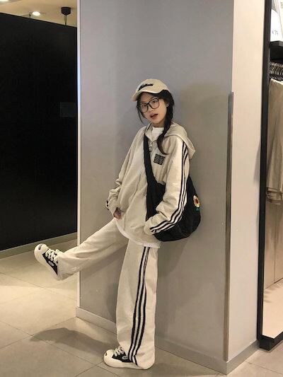 2024 秋冬 2点セット トップス お出かけフード付き 羽織り ショート丈 セットアップフルパーカー ルーズ サイド上下ボトムス ストレート系冬 ゆったりサイズワイドシルエットリラックストラック