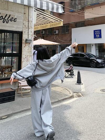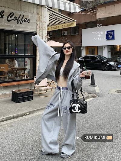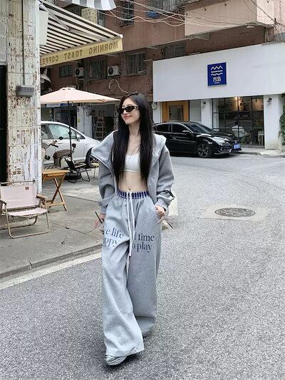 2024 春秋 2点セット トップス お出かけ 羽織り ショート丈 セットアップ フルラウンドヘム ルーズ サイド ボトムス ストレート系冬 ゆったり サイズワイドシルエット リラックストラック