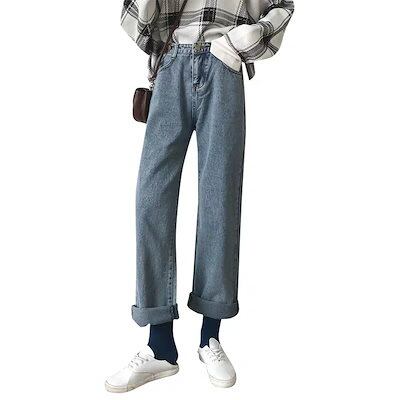 デニムパンツ ハイウエスト スモークグレー ジーンズ レディース ストレート ゆったり 薄手 百掛け 2024春秋新作 大きいサイズ ワイドパンツ 韓国