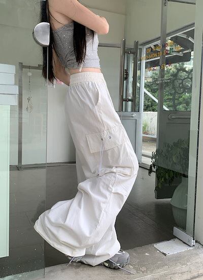 2024春夏パンツ ロング丈 ポケット ワイド ストレート ウエストゴム ハイウエスト 美脚効果 脚長効果 細見え 夏 白 黒 おしゃれ かわいい 韓国ファッション レディース お出かけ