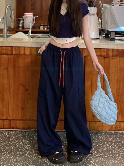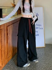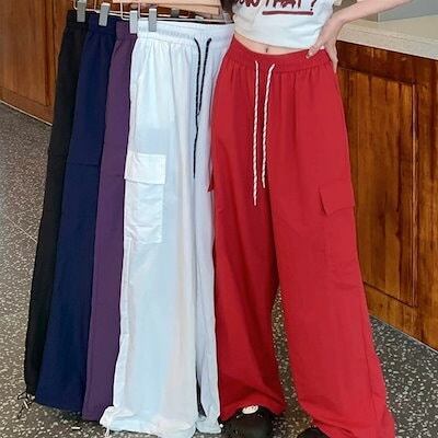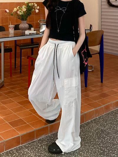 2024春夏パンツ ロング丈 サイドポケット ウエストゴム ワイド ストレート ハイウエスト 美脚効果 脚長効果 細見え 夏 白 黒 緑 赤 おしゃれ かわいい 韓国ファッション レディース お出かけ