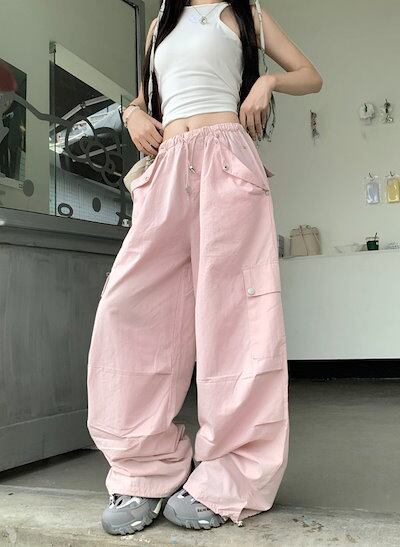 2024春夏パンツ カーゴパンツ ロング丈 ワイド ストレート ハイウエスト 美脚効果 脚長効果 細見え 夏 白 黒 おしゃれ かわいい 韓国ファッション レディース お出かけ