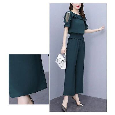 【2点セット】涼しく楽ちん セットアップ レディース 40代 半袖 通勤ハイウエストショーツ2点セット レース ワイドパンツ カジュアル オシャレ 韓国風 着痩せ 大きいサイズ
