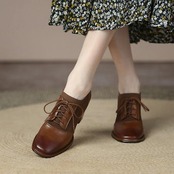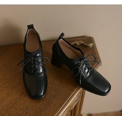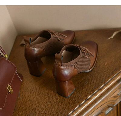 欧米お洒落レースアップシューズ復古ハイヒール通勤ニット切り替え太ヒール ローファー YX1福袋