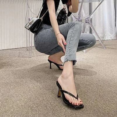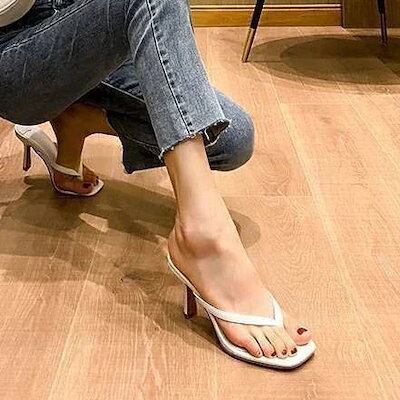 スタイルアップヒールパンプス 韓国ファッション サンダル つま先サンダル ハイヒールファインヒールビーチサンダルファッションクリップ足スリッパスクエアヘッドピュアカラースリッパ