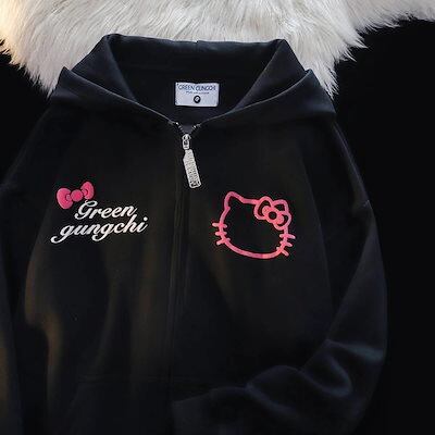 【新入荷】ハローキティ 可愛い 地雷系 量産型 ジップアップ スウェット キティちゃん 原宿系 アウター レディース 大きいサイズ