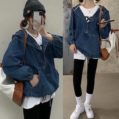 2023初秋新作入荷 韓国ファッション パーカー UVカット トップス スウェットパーカー デニム ゆったり 秋アウター 長袖 フード付き アウター パーカー レディース