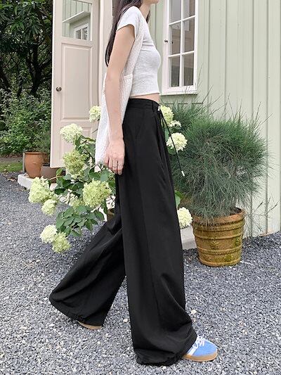 2024 春秋パンツ ロング丈 ワイド ストレート ハイウエスト 美脚効果 脚長効果 細見え 夏 水色 黒 おしゃれ かわいい 韓国ファッション レディース お出かけ