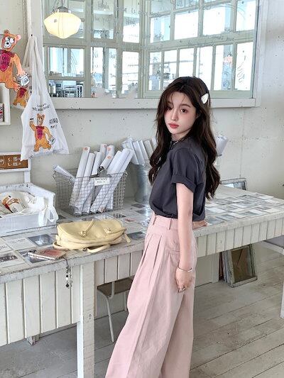 2024 春夏パンツ ロング丈 ベルト付き ワイド ハイウエスト 美脚効果 脚長効果 細見え 夏 ピンク おしゃれ かわいい 韓国ファッション レディース お出かけ