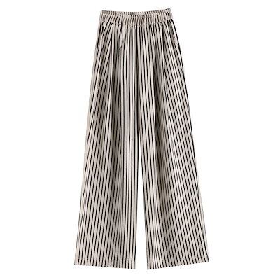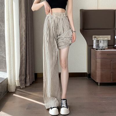本日の限定商品 ワイドパンツ ワイドパンツ レディース カジュアルワイドパンツ 夏の新作ハイウエストドローストリングワイドパンツ スリムなドレープストレートレッグパンツ 細身のストライプパンツ