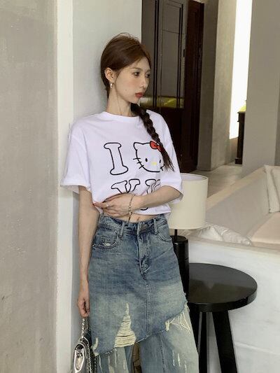 2024 夏 韓国パンツ ロング丈 デニム ジーンズ 2枚重ね ハイウエスト 美脚効果 脚長効果 細見え 夏 おしゃれ かわいい 韓国系ファッション レディース 加工メンズライク