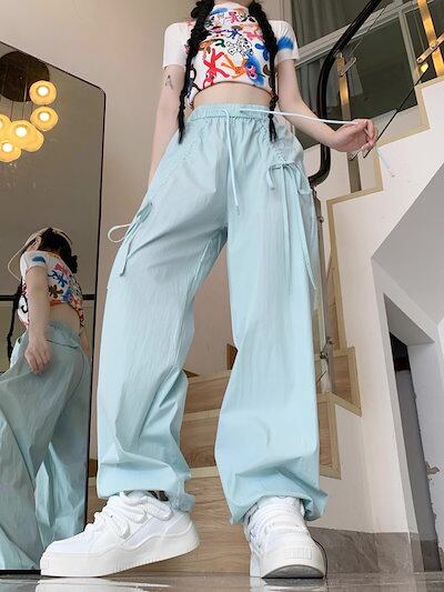 2024春夏パンツ ロング丈 カーゴパンツ ワイド ストレート ハイウエスト 美脚効果 脚長効果 細見え 夏 白 黒 青 韓国ファッション レディース かわいい おしゃれ カジュアル お出かけ