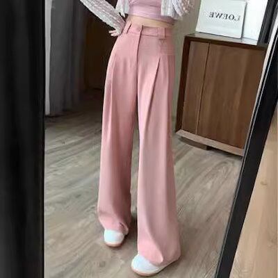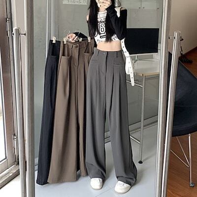 ズボン2024新作ルーズスリムストレートパンツレディース春秋ズボンハイウエストドレープカジュアルデザインスーツワイドレッグパンツ