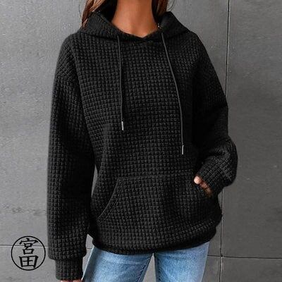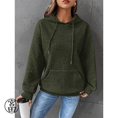 パーカー レディース ワッフル 長袖 大人 シンプル プルオーバー カジュアル トップス 大人かわいい ゆったり 体型カバー ビッグシルエット スウェット