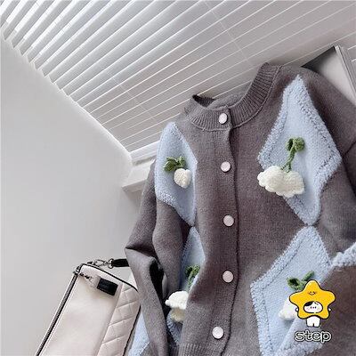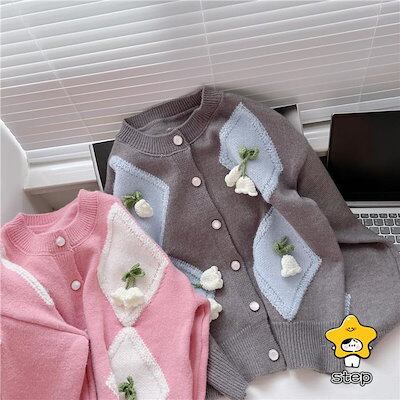 ニットセーターレディース きれいめ 長袖 ニットソー 大人 カジュアル おしゃれ セーター 花 フラワー ニットリブニットトップス ボタン 着やせ 可愛い