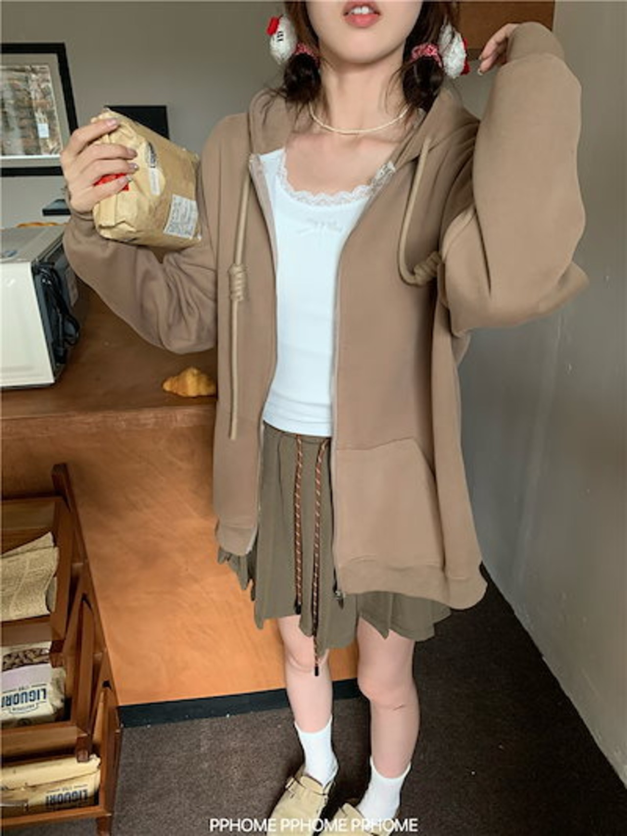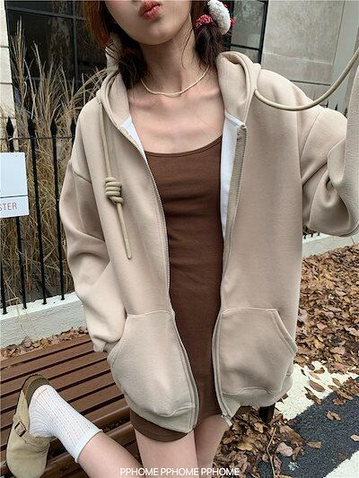 6色 今年 秋冬 韓国 かわいい レディース フード付きアウターフーディーロゴブルゾン長袖シルエットトップスサイド冬カジュアルファッション系サイズお出かけフル丈トラック高校生 通学大学生