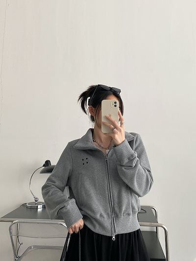 2024 秋 韓国 かわいい レディース アウター ブルゾン お出かけ ブラック ライトカーキ アウター長袖セクシートップスサイド冬カジュアルファッション系お出かけフル丈トラック