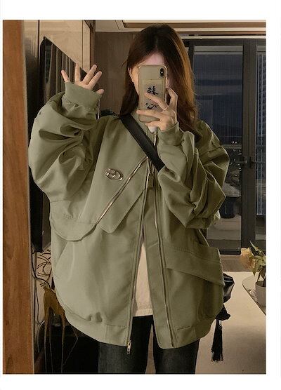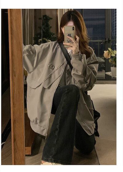 2024 秋 韓国 かわいい レディース フード付き アウター ブルゾン お出かけ 長袖セクシーシルエットトップスサイド冬カジュアルファッション系サイズお出かけフル丈トラック