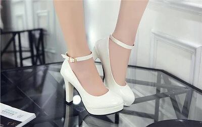 メガ割 韓国ファッション 気質 軽熟風 防水プラット 一字型ボタン パテントレザー ハイヒール