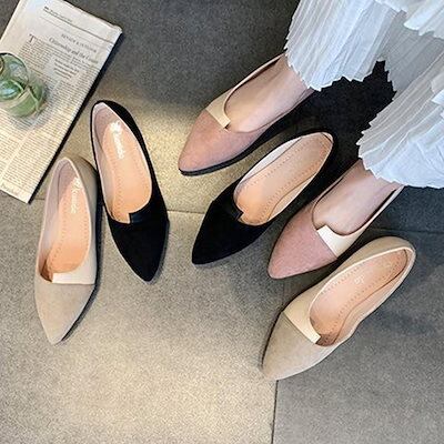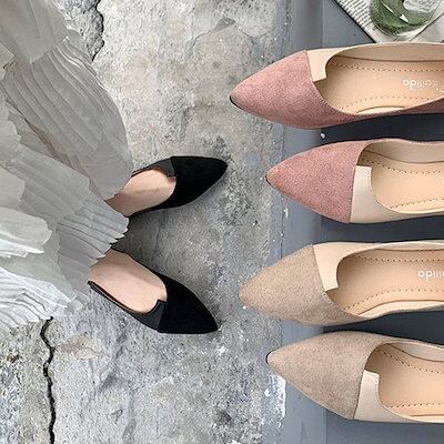 メガ割 パンプス ぺたんこ レディース 配色靴 美脚