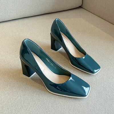 スタイルアップヒールパンプス スクエアトゥハイヒール チャンキーヒール キャリアシューズ 8cm
