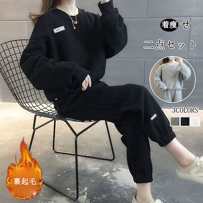 【2枚購入で 2oo円OFF!】2024新作 カジュアル セットアップ レディース 裏起毛 厚手 パーカー スウェット 運動 ワイドパンツ 二点セット 着痩せ 大きいサイズ 裏起毛ファッション